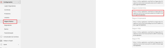 Este link para enviar ao cliente fica disponível no seu acesso Segfy, pelo caminho: