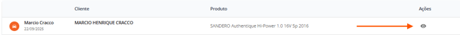 Além das opções dos filtros, ao lado direito de cada cotação, você terá a ação de visualizar
