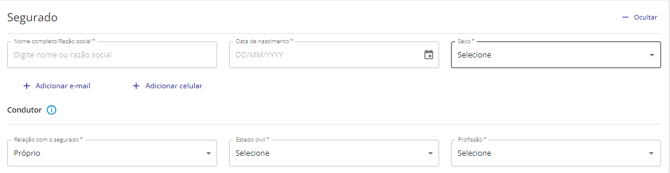 3) Logo em seguida, temos o campo para preenchimento dos dados do segurado e do Condutor.