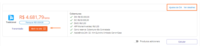 Ou alterar de uma seguradora específica e calcular somente com aquela seguradora: