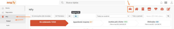 1) Para iniciar uma nova cotação, clique no menu: HFy > Auto