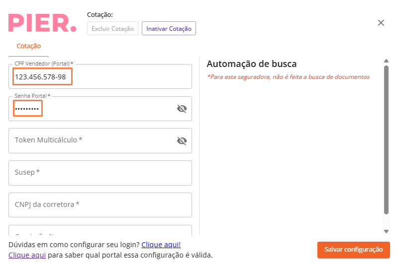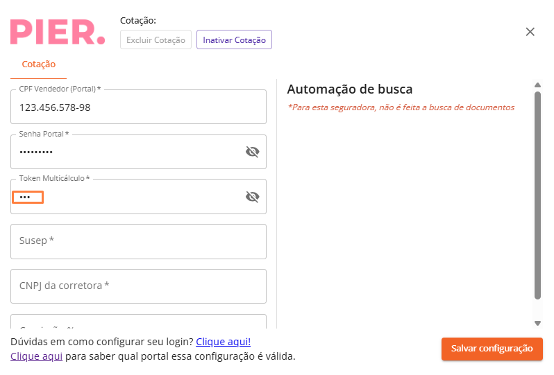 Logins Seguradoras - Como configurar o login da Pier.