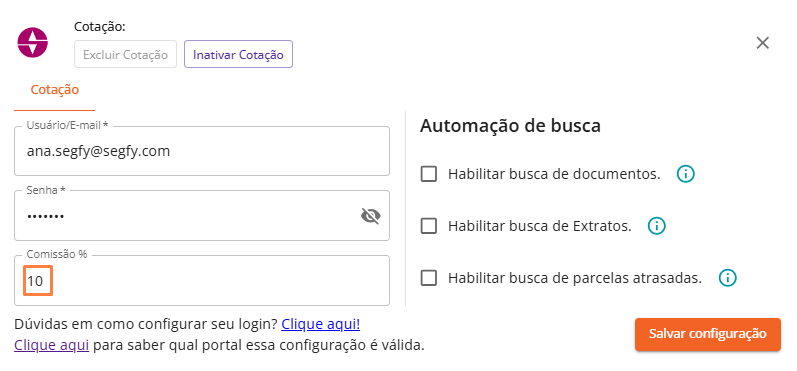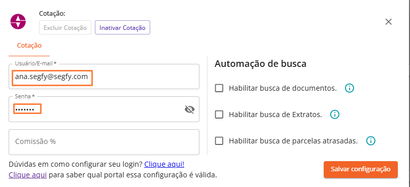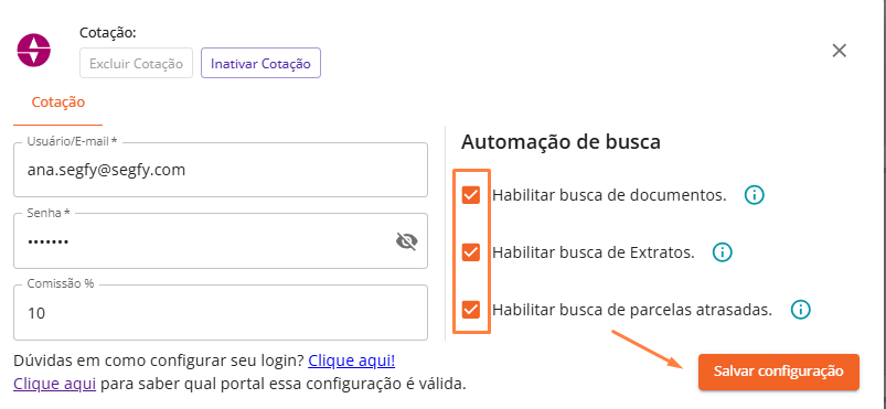 Neste artigo vamos ensinar a cadastrar o login da Sancor para uso na Segfy.