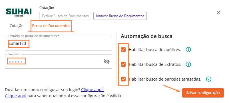 Aqui vamos usar você a configurar o login e senha para cotar na seguradora Suhai.