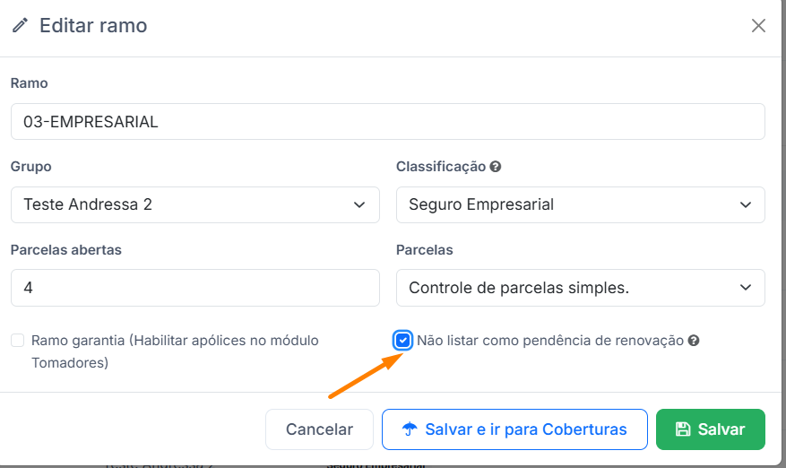 Sabemos que existem ramos de seguros que não são renováveis, correto? Com isso a Segfy implementou dentro do cadastro de cada ramo do seguro a opção de marcá-lo como “Não renovável”, ou seja, não listar como pendência de renovação em seus relatórios e dashboards.