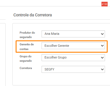 2) No campo Controle da Corretora, basta selecionar o Gerente de Contas responsável: