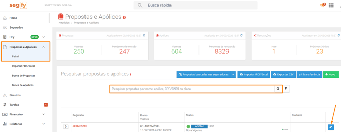 Caso deseje visualizar os documentos desses segurados, acesse Propostas e Apólices > Painel para consultar as propostas e apólices vinculadas.