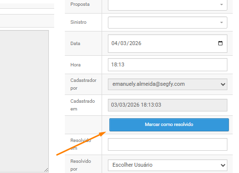 6) Assim que realizar a mesma, marque-a como resolvida:
