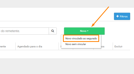 4) Clique em “Novo” e depois em “Novo vinculado ao segurado”: