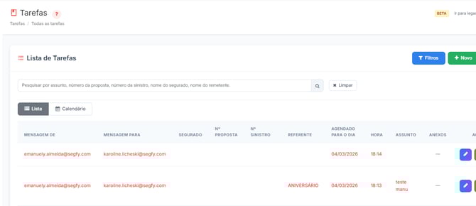 Precisa de um controle de tarefas e atividades vinculadas ao cliente ou segurado? Um lembrete de alguma reunião, ou até mesmo uma ligação?