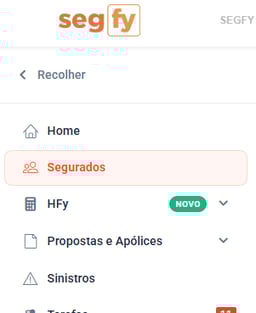 1) Para criar uma nova tarefa vinculada ao segurado, clique no menu lateral esquerdo em 'Segurados':