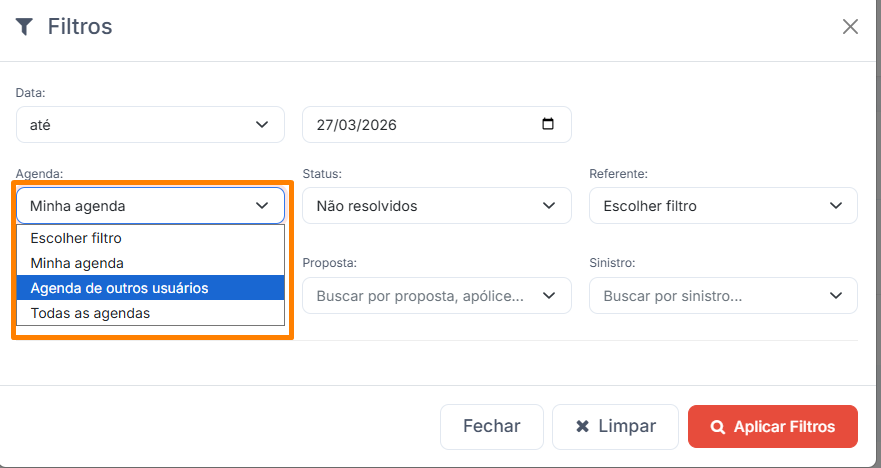 2) Na opção “Agenda” escolha a opção “Agenda de outros usuários”: